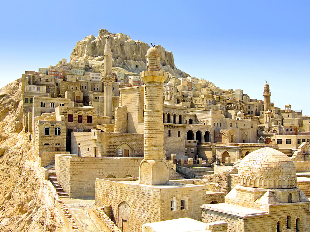 Image of buildings carved out of hillside in Turkey